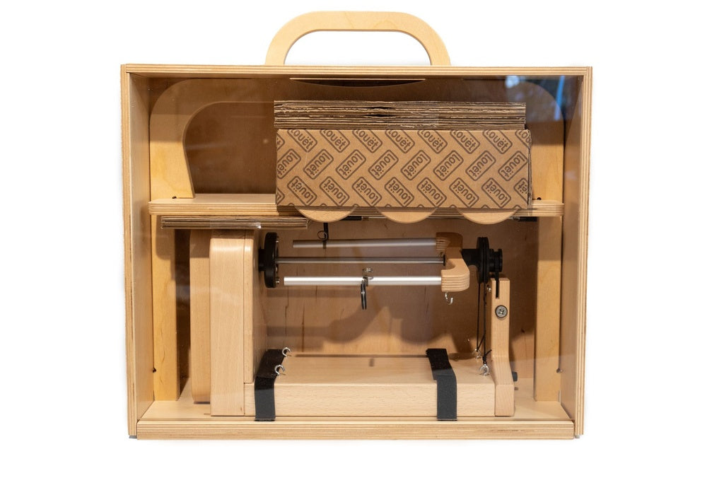 Jenn-E features both Irish tension and Scotch tension. The name of the E-Spinner is Jenn-E, named after a spindle frame invented by James Hargreaves in 1764. We thought this was a nice reference to the evolution of spinning and the difference between foot treadled and electric.