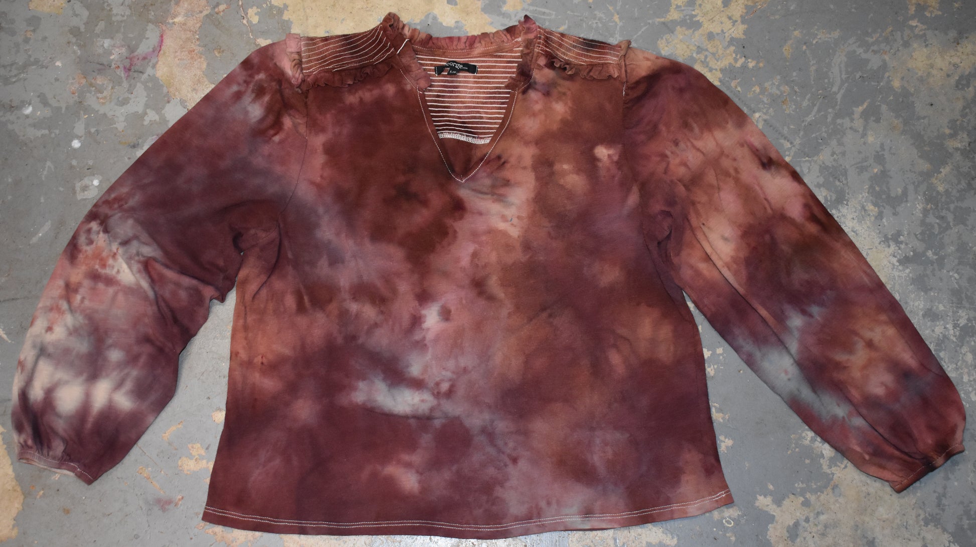 This ice dye blend has rich warm brown tones that remind me of working with mahogany wood when I used to make small treasure boxes. The splits range from beige to mauve to dark brown. Blend made with procionMX dyes.