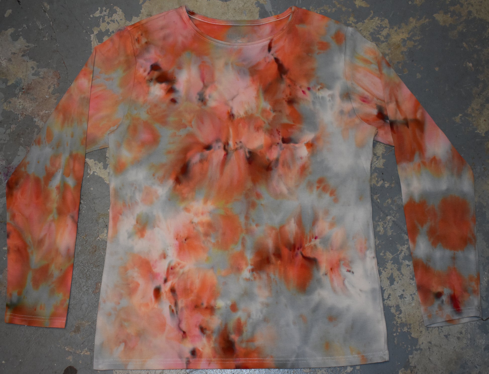 Ice dye blend that reads orange to light red, and splits to pink, red, yellow and orange. Blend made with procionMX dyes.