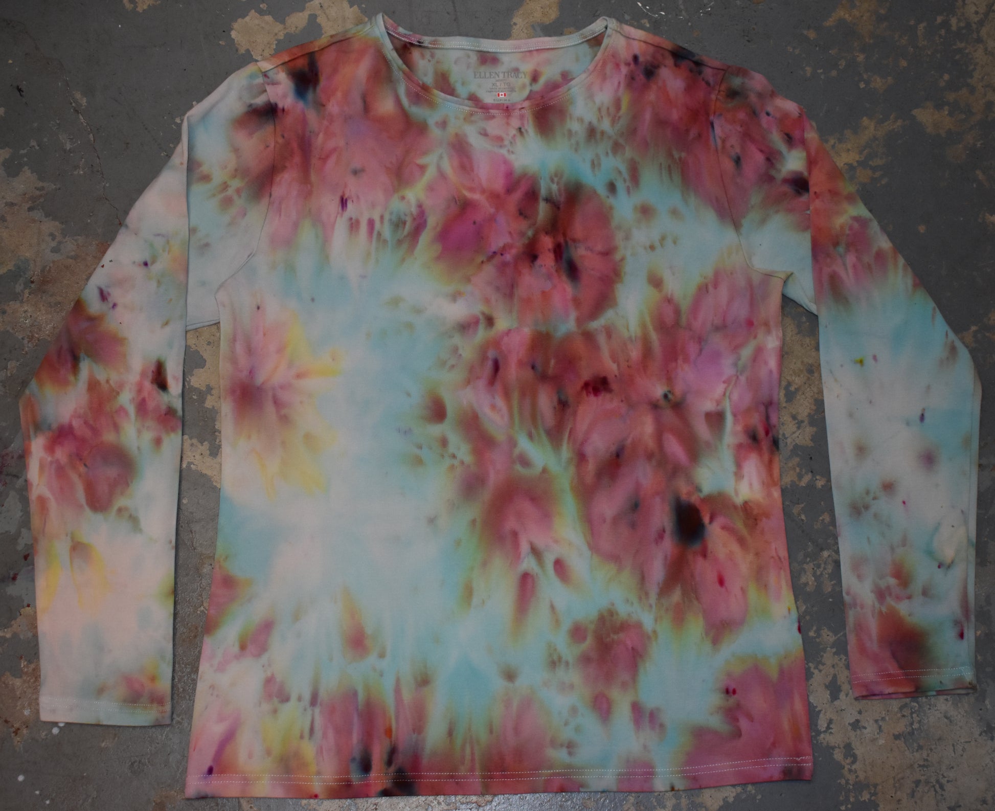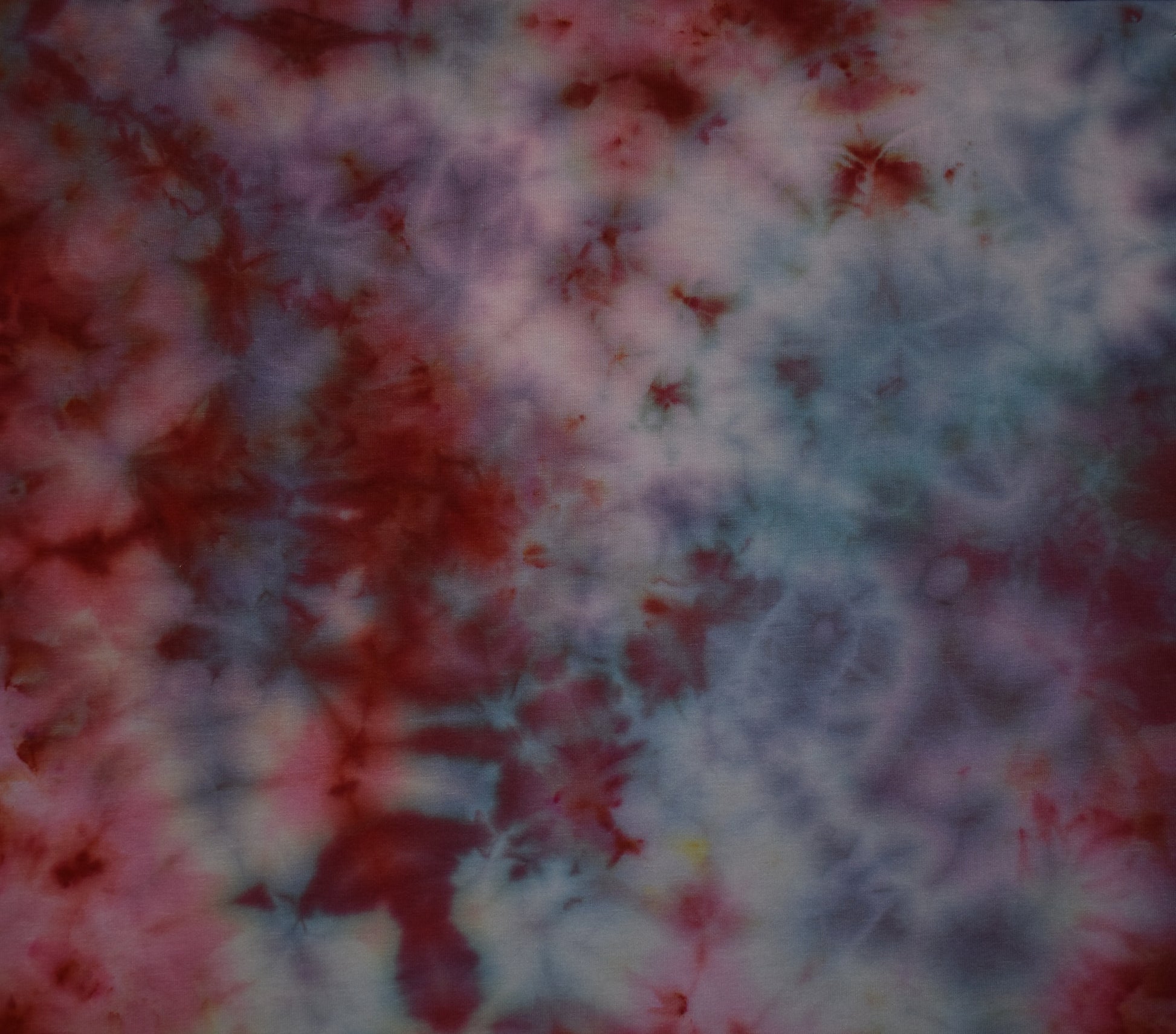 I'm having a time finding a name that sticks nicely to this sample! So many colours show up differently in each test sample. Ice dye blend that reads shades of pink and maroon to blue. I look at the samples and sometimes I see spring, sometimes I see autumn! Blend made with procionMX dyes.